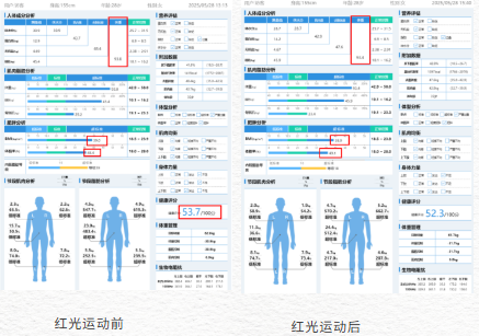 28岁的艾老师因基础疾病服过激素、不适宜运动,接受1次红光减脂,并结合个性化方案调理。